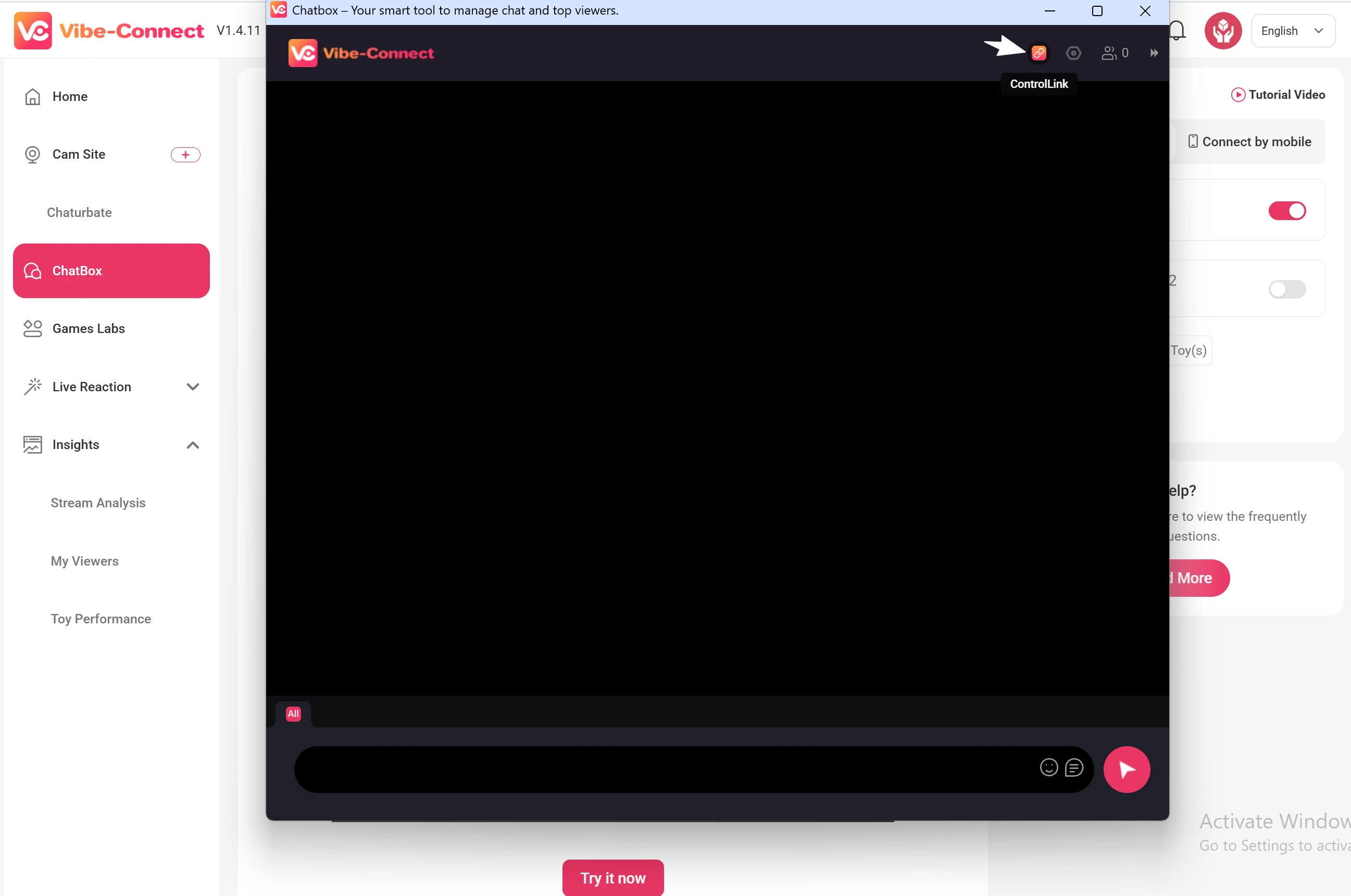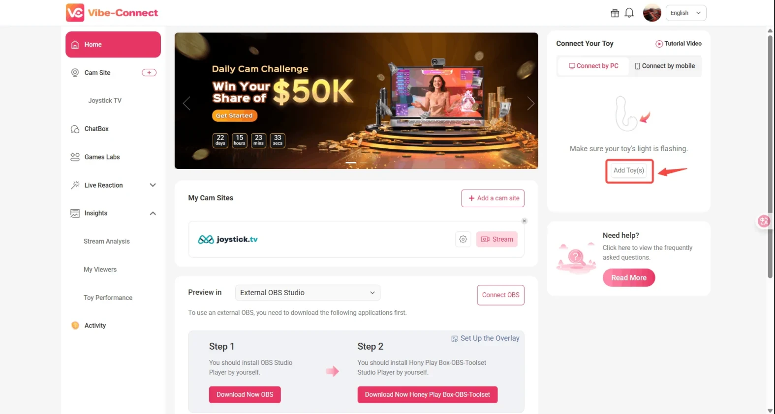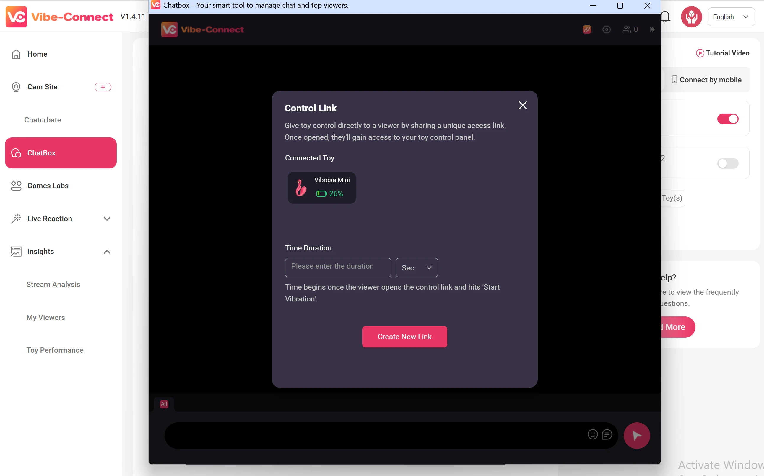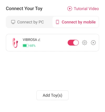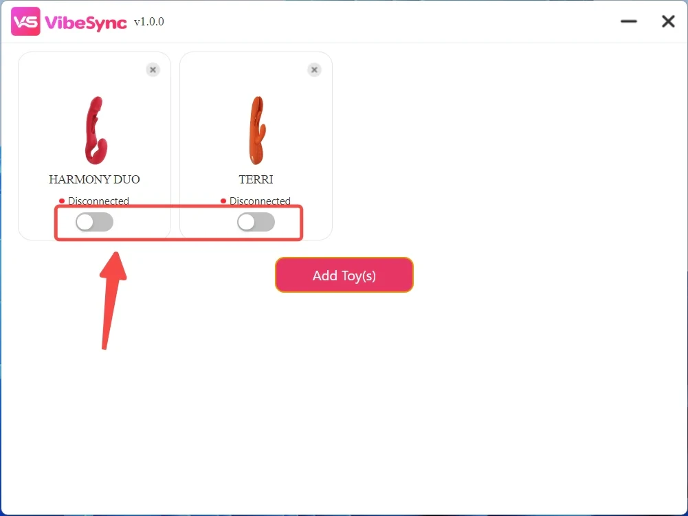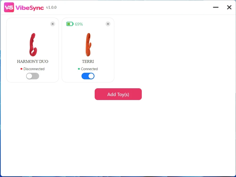 Once Vibe-Connect is open, click Add Toy(s) for toy connection.