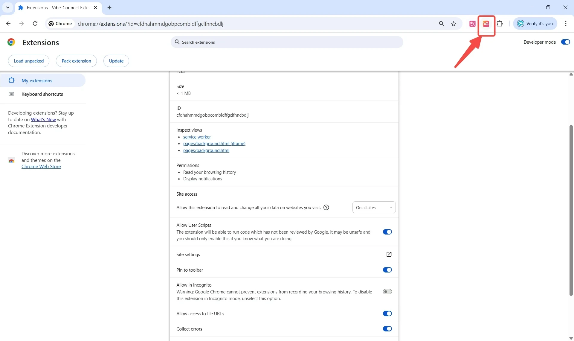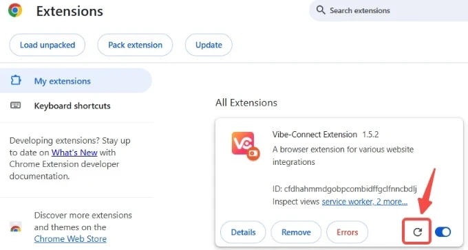 In the Vibe-Connect mobile app, tap the “Scan QR Code” button in the top-right corner of the screen. Then scan the QR code displayed on your computer.