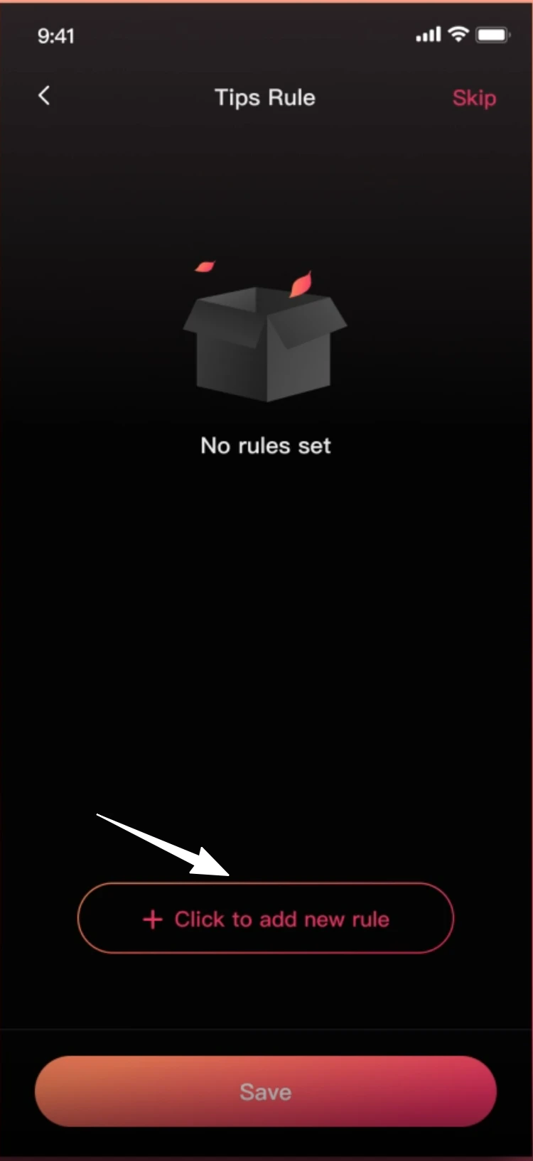 Launch the Vibe-Connect app and tap the “+Add” button next to the "Rule".