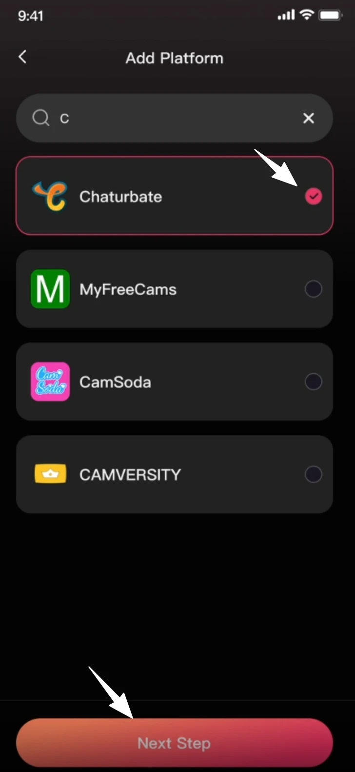 And log in to your platform using your credentials or authorization code. (e.g., Chaturbate).